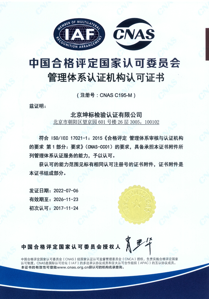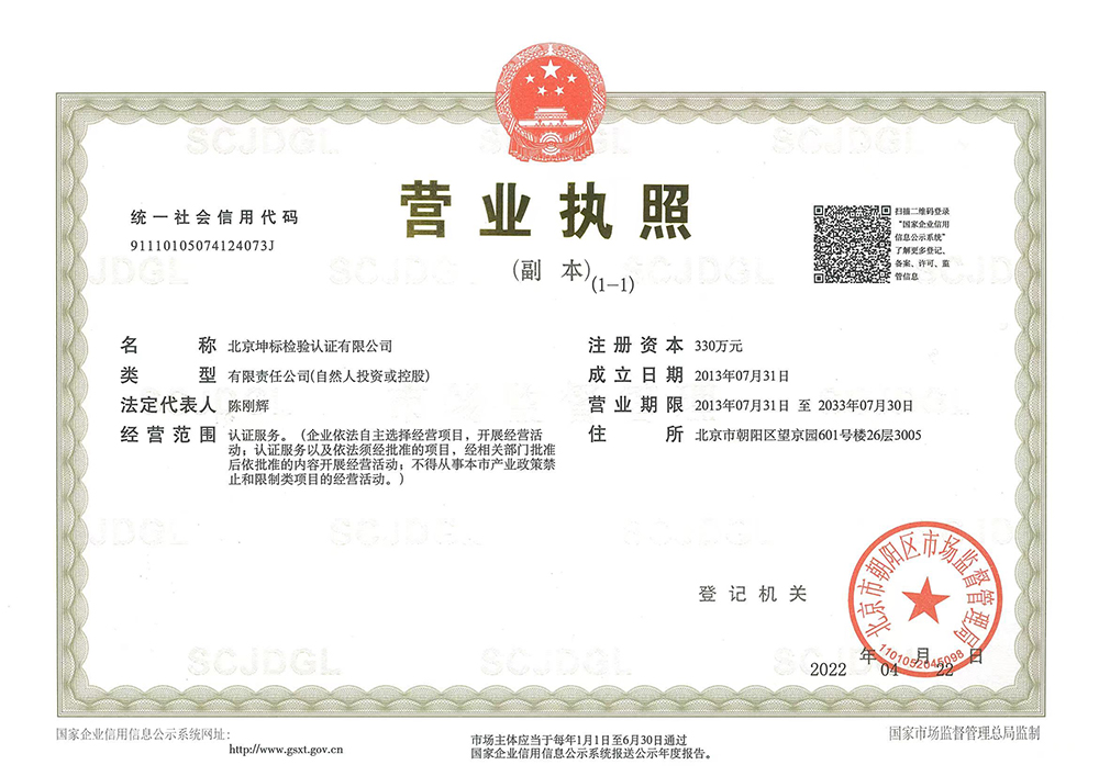 北京坤標(biāo)檢驗認(rèn)證有限公司